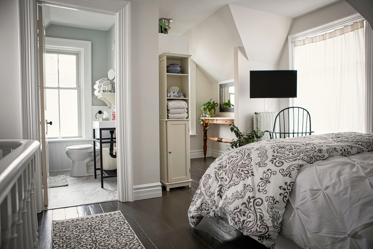 Bem-vindo à Elora Heritage House, onde experiências inesquecíveis esperam por você no coração de Elora. Construída no século XIX, nossa casa meticulosamente trabalhada exemplifica qualidade e atenção aos detalhes. Descubra quartos cuidadosamente organizados com móveis de meados do século, design moderno e um ambiente nostálgico. Aninhado em meio a árvores serenas, arredores naturais generosos, restaurantes de classe mundial e lojas estão a poucos passos de distância. Abrace a essência de Elora em nosso refúgio aconchegante.