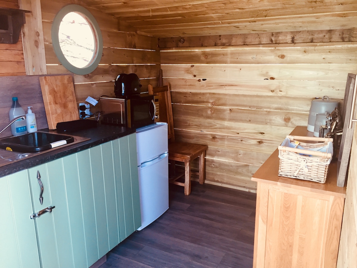 O exclusivo Tin Shed foi projetado usando materiais sustentáveis e reciclados, com arte original de artistas locais e repleto de luz natural. É revestido com madeira criando um ambiente acolhedor e natural e também tem um aquecedor a lenha. Uma cozinha compacta e bem equipada, espaço de estar, banheiro no piso térreo com chuveiro elétrico e WC. No andar de cima há um quarto generoso com cama Super King ou camas de solteiro e belas vistas para o campo ondulante a partir de uma janela panorâmica. Lá fora há um pátio e uma lareira externa.