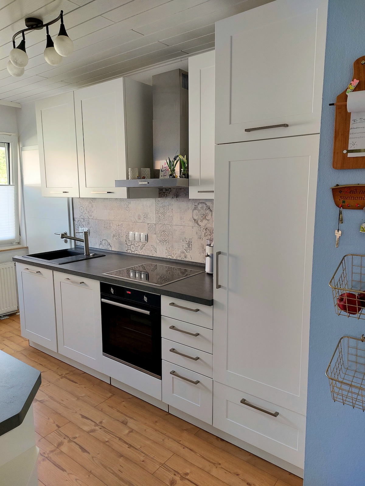 Herzlich Willkommen in meiner 95 qm großen, schön hellen Ferienwohnung! Ich freue mich immer darüber, nette Gäste zu begrüßen! Im Garten ist viel Platz zum Entspannen, Frühstücken, Spielen mit den Kindern oder netten Grillabenden - in der kühlen Jahreszeit könnt ihr es euch vor dem knisternden Kamin gemütlich machen und von Home-Office am Schreibtisch bis Wellness unter der Regenwalddusche oder in der Badewanne bietet die Wohnung alles was das Herz begehrt :)