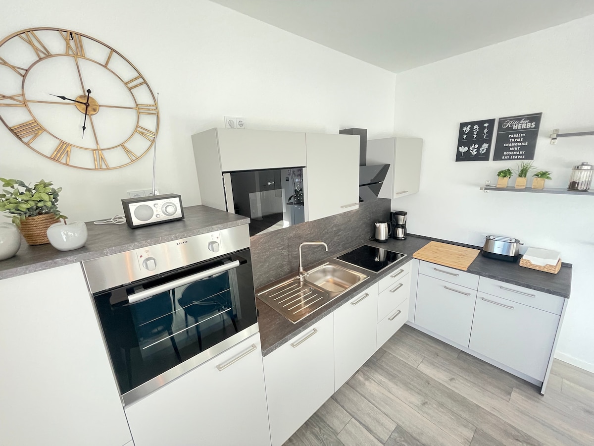 Nosso apartamento "Lee" foi concluído em fevereiro de 2022 e oferece espaço para 2 pessoas em 72 metros quadrados confortáveis. Está localizado em uma rua lateral tranquila, a poucos minutos a pé da praia do Mar do Norte e do pitoresco porto de barcos no Wremer Deich.