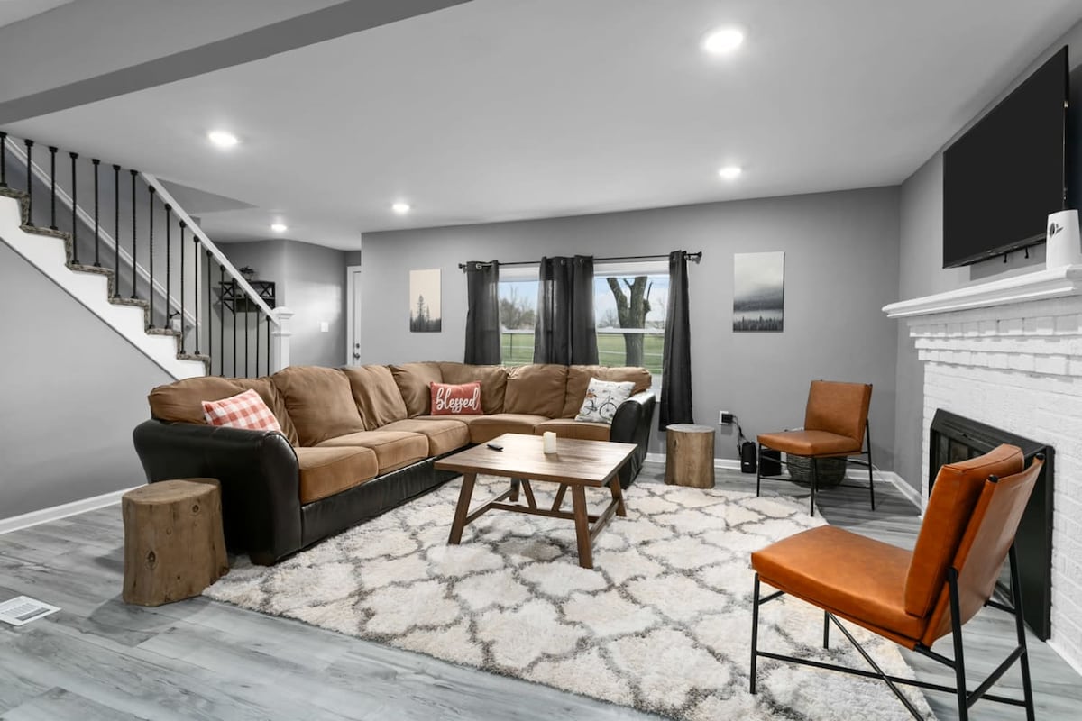 Banheira de hidromassagem, lareira, pátio no terraço e vistas incríveis do horizonte de KC! Casa nova, com camas king confortáveis, 3 tvs e decoração moderna. Grelha exterior, mesa de piquenique, fogueira a lenha e fogueira a gás no terraço. Redes, corn hole e jogos de tabuleiro. Após a reserva, os hóspedes devem preencher um contrato de arrendamento e fornecer um documento de identificação oficial válido com fotografia antes do check-in. Isto é obrigatório para todos os hóspedes, sem exceção.
