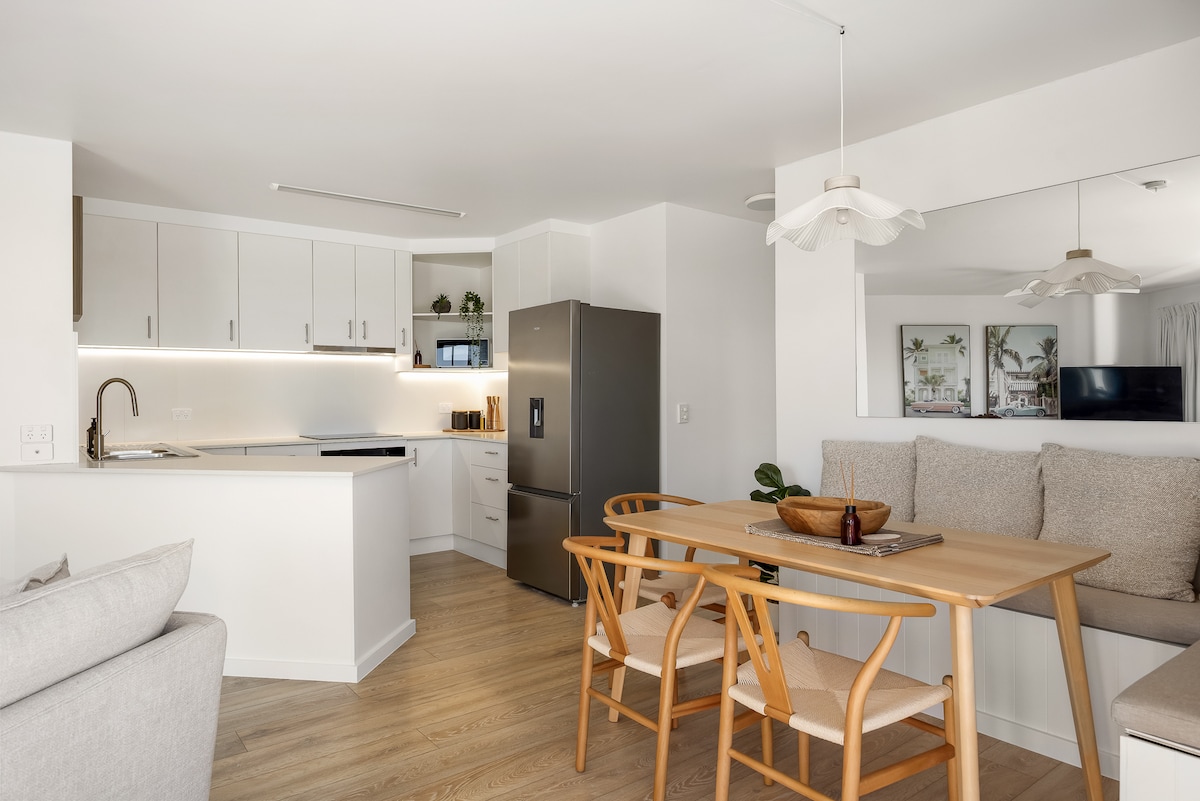 Apartamento romântico à beira-mar com vistas panorâmicas sobre as baías de Coolum. Desfrute de amanheceres sobre o oceano, mergulhe na banheira enquanto as ondas chegam ou desfrute de café na sua varanda privada acima da rebentação. Perfeito para alguns dias tranquilos à beira-mar, este moderno retiro em plano aberto combina luxo e conforto num ambiente costeiro tranquilo. Passeie pelo passeio marítimo panorâmico, explore praias escondidas e passeie pelos cafés locais. Relaxe na areia na Primeira e Segunda Baía, a poucos metros da sua porta.