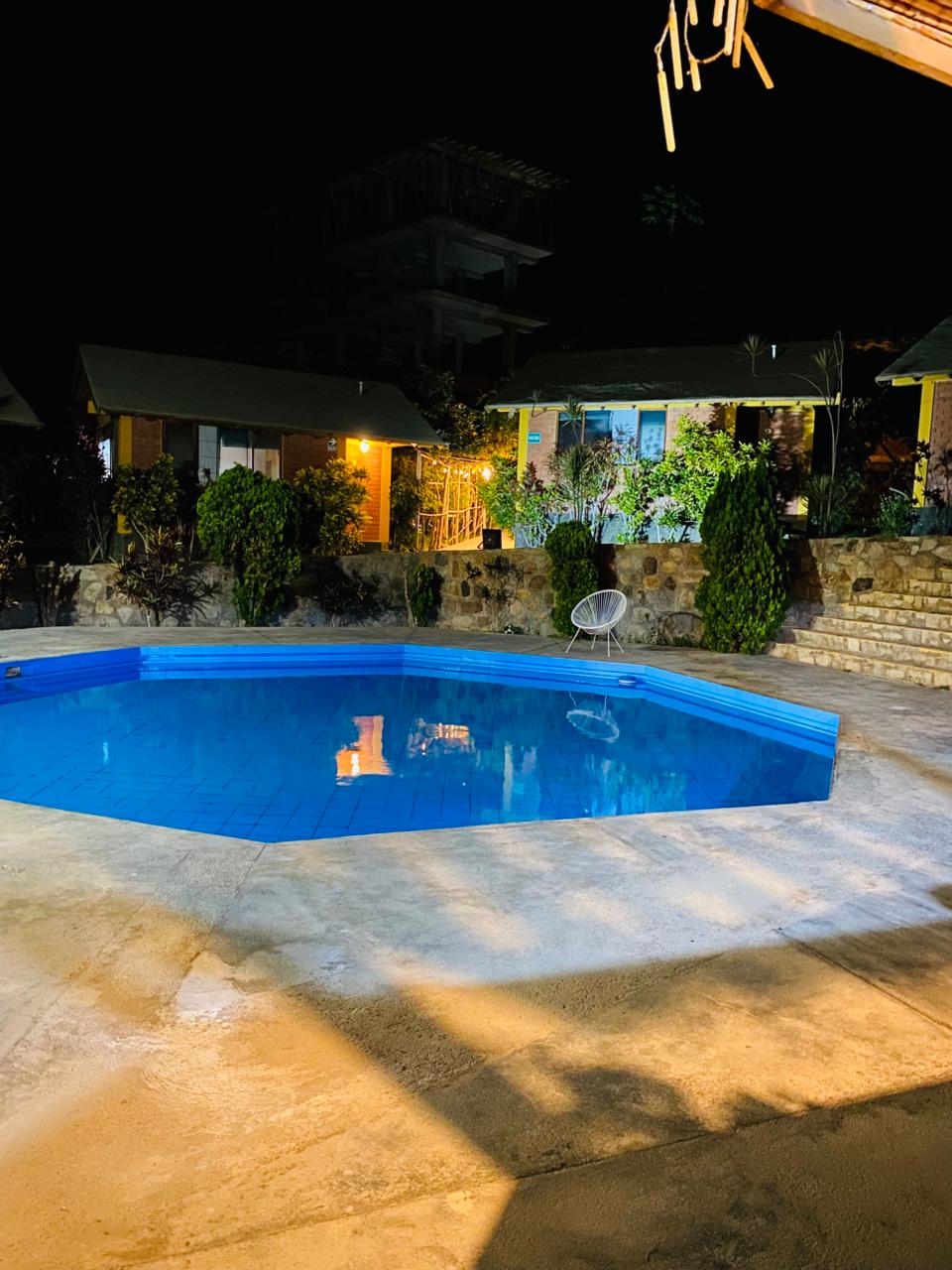 Casa de madeira de dois andares, cujo design foi feito pelo arquiteto Roberto Riofrio. Tem 3 quartos, cada um com casa de banho completa, casa de banho de visita, sala de estar, sala de jantar, cozinha completa e terraço, além de piscina, jardim, grelha e internet para Wi-Fi. A área total da propriedade é de 3.600 metros, tem mais de 300 Hass paltos, plantas granadilla, maracuya, romã, limão, aquamaynto e muito mais.