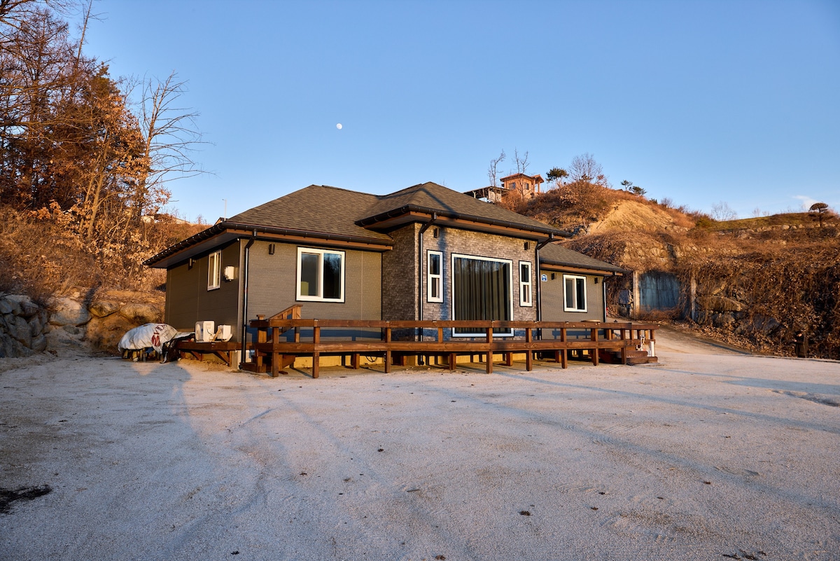 Esta é uma casa de campo acolhedora perto de Nam-Andong IC, um refúgio tranquilo onde a família e os amigos podem relaxar e descontrair. Lojas locais, cafés e um pequeno mercado ficam a apenas 5 minutos de carro, e os supermercados maiores e o centro da cidade ficam a apenas 15 minutos de distância. Está disponível uma cozinha exterior para churrascos e grelhados. Para uma estadia confortável, não são permitidos churrascos e cozinhar carne no interior. Agradecemos a sua compreensão. Esteja à vontade para entrar em contacto comigo a qualquer momento com dúvidas :)