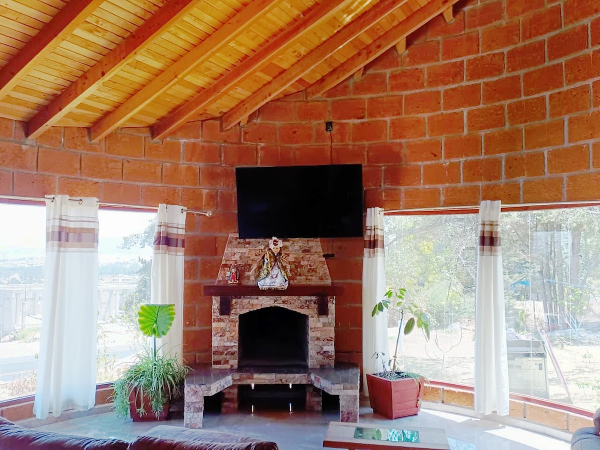 Esplêndida cabana na floresta com serviços incríveis: * Grande jardim de 1000 m² com plantas ornamentais e árvores frutíferas. * Sala de jantar ao ar livre com churrasqueira a carvão, lareira a lenha e brinquedos infantis. * Sala externa com lareira a gás e vista para a Barragem de Brockman. * Jacuzzi coberta cercada por vegetação. * Sala de jogos com mesa de bilhar e air hockey. * A apenas 20 minutos de Tlalpujahua e 8 minutos de El Oro de carro.