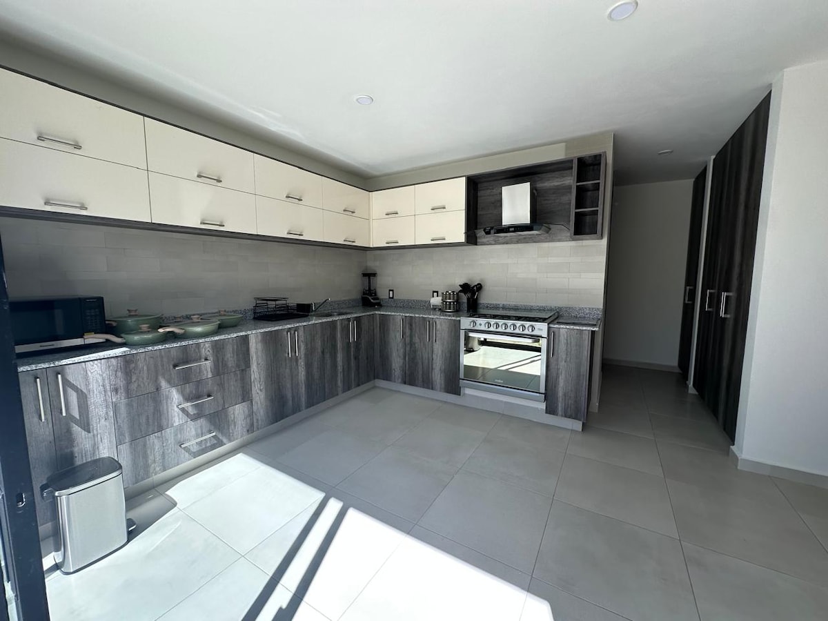 🔔 Reserve com antecedência Às sextas-feiras, as datas são bloqueadas a partir das 17h00 e desbloqueadas no sábado às 18h30. 📶 Internet Megacable 🏡 Espaço tranquilo e elegante Apartamento bonito, novo e totalmente equipado com uma bela vista. Adoramos que se sinta em casa; o nosso objetivo é tornar a sua estadia confortável e agradável. 🚗 O estacionamento fica a aproximadamente 75 metros da propriedade.