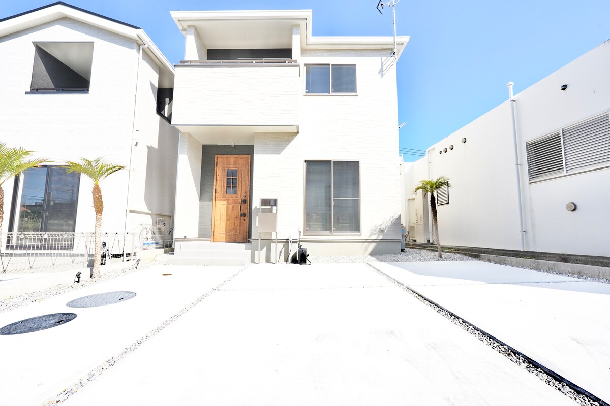 Pode relaxar com a sua família e amigos nesta casa 4LDK. A 60 minutos de carro do Aeroporto de Naha! Wi-Fi melhorado, bom. Está disponível estacionamento para 1 carro. Além disso, pode ser utilizado gratuitamente um automóvel compacto de quatro lugares durante a sua estadia, desde o check-in até ao check-out.*É necessária uma reserva separada. * Por favor, mantenha o silêncio das 21h às 7h em consideração aos vizinhos. Serão aplicadas multas por problemas com os vizinhos. Restaurantes, cafés, instalações turísticas, supermercados, etc. estão todos a 10 minutos de carro! De praias populares e bem conhecidas a joias escondidas como praias privadas◎!