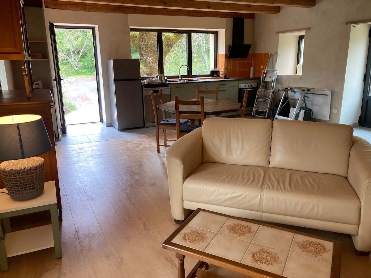 Nossa acomodação — classificada com 4 estrelas **** — é única. É único porque nós mesmos o construímos de A a Z com materiais nobres e naturais. É única porque é espaçosa, luminosa e tranquila. Está idealmente localizado ao mesmo tempo em uma área tranquila em um loteamento de uma bonita cidade e perto de Issoire, de fácil acesso, pois não muito longe da saída 15 da A75. Perfeito como acomodação para viajantes de passagem ou como um ninho de amor para visitar nossa bela região.