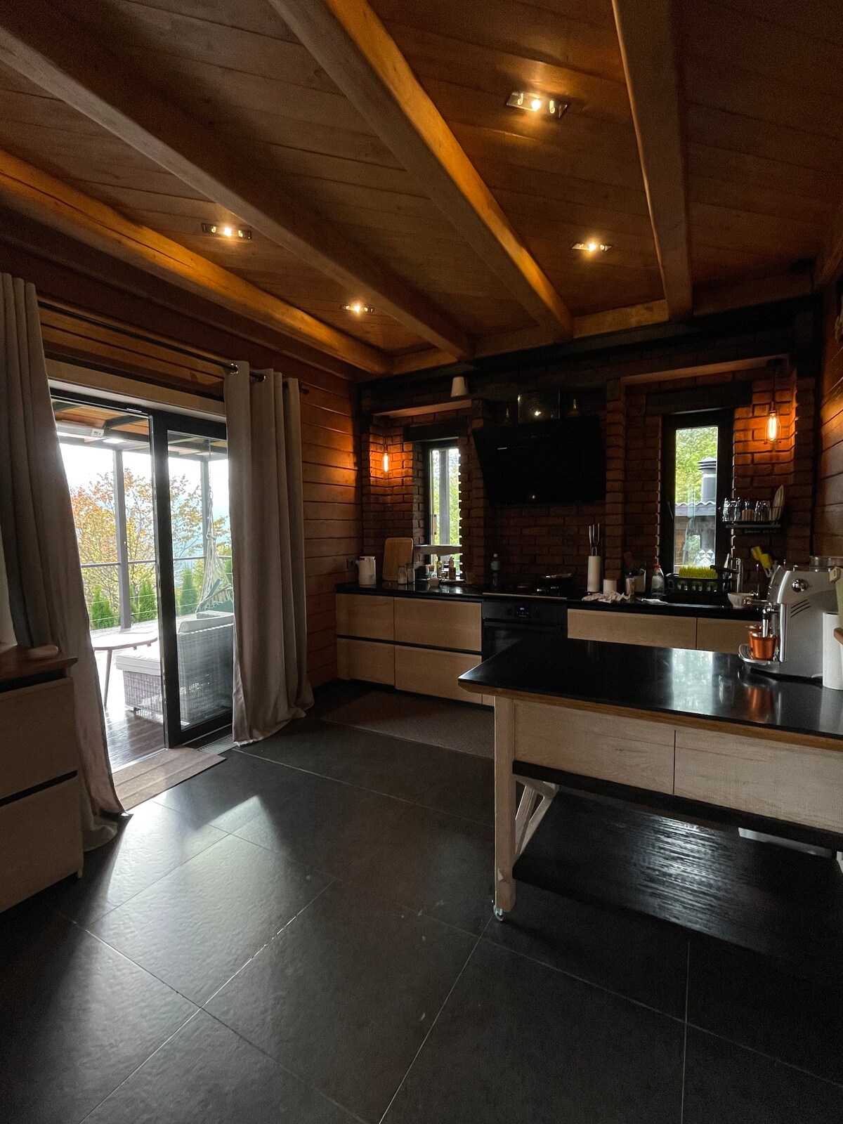 Casa de campo encantadora em Slavsk com vista panorâmica para a montanha. Lugar tranquilo, atmosférico e incrivelmente estético. - Terraço espaçoso. - Cozinha Equipada - Quarto acolhedor com vista - Biblioteca de livros inspiradores - Lareira - TV - Starlink - Gerador - Condicionador - Água de nascente - Área de churrasco (gazebo com grelhador) - Estacionamento coberto com vigilância por vídeo - Guia - Recolha e entrega gratuitas – Entrega de restaurantes - 15 minutos a pé do centro de Slavsko – Reservas a partir de 1 noite - Adequado para Animais de Estimação