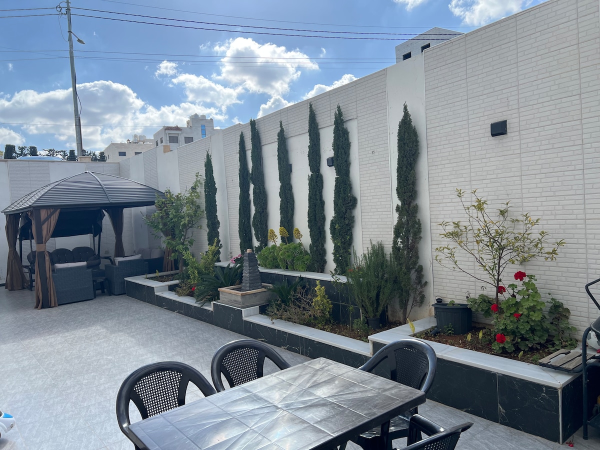Luxo moderno no coração de Amã. Este espaçoso apartamento de 3 quartos e 2,5 casas de banho acomoda até 8 hóspedes com pisos de mármore elegantes, iluminação LED e uma elegante área de estar aberta. Os destaques incluem uma cozinha alemã personalizada com eletrodomésticos premium, máquina de lavar/secar roupa no interior e uma varanda privada com lugares para cinco pessoas e um baloiço. Com ar condicionado em todos os quartos e Wi-Fi de alta velocidade, é a estadia perfeita para famílias, viajantes de negócios ou grupos que procuram conforto e estilo.