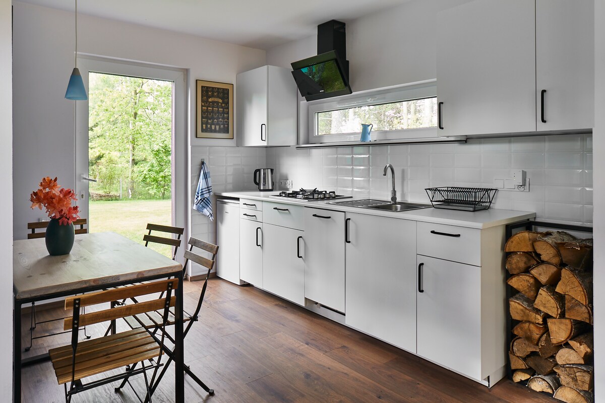 A casa da floresta é de duas casas (Sójka e Woodpecker) à beira da Floresta Branca, então você pode fazer caminhadas sem entrar no carro. Basta usar seus sapatos e você se encontrará na floresta depois de alguns passos. A Woodpecker House oferece excelentes vistas do ambiente pitoresco, proporcionando todas as comodidades necessárias para uma estadia confortável. A Woodpecker House se distingue por toques de cor vermelha, referindo-se à plumagem vermelha distinta.