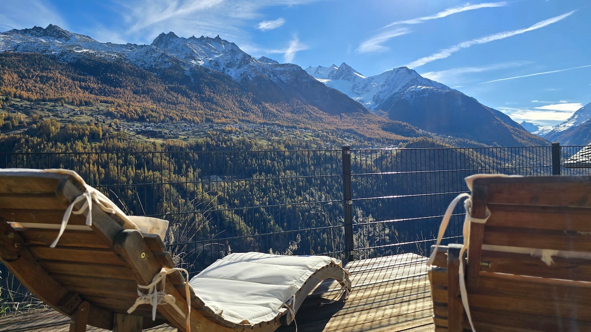 Estúdio agradável "Chalé", renovado em dezembro de 2020, para 2 pessoas com Wi-Fi e TV. Grande terraço partilhado com vista para a aldeia de Zermatt e para o Matterhorn (no inverno, ver fotos). Cozinha equipada com frigorífico, forno, café Nespresso, chaleira, torradeira, Raclette e Fondue. Uma cama de casal (140x200) com gavetas de arrumação, um guarda-roupa, mesa e cadeiras mobilam o quarto. A casa de banho tem um chuveiro, sanita e lavatório. Estão disponíveis roupa de cama, banho e roupa de cozinha.
